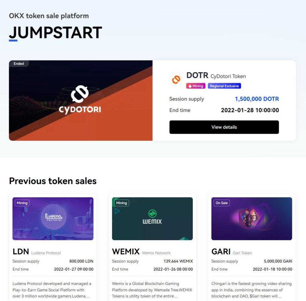 Jumpstart is OKX’s launchpad, and is similar to the launcphads found on major crypto exchanges like Binance and KuCoin.