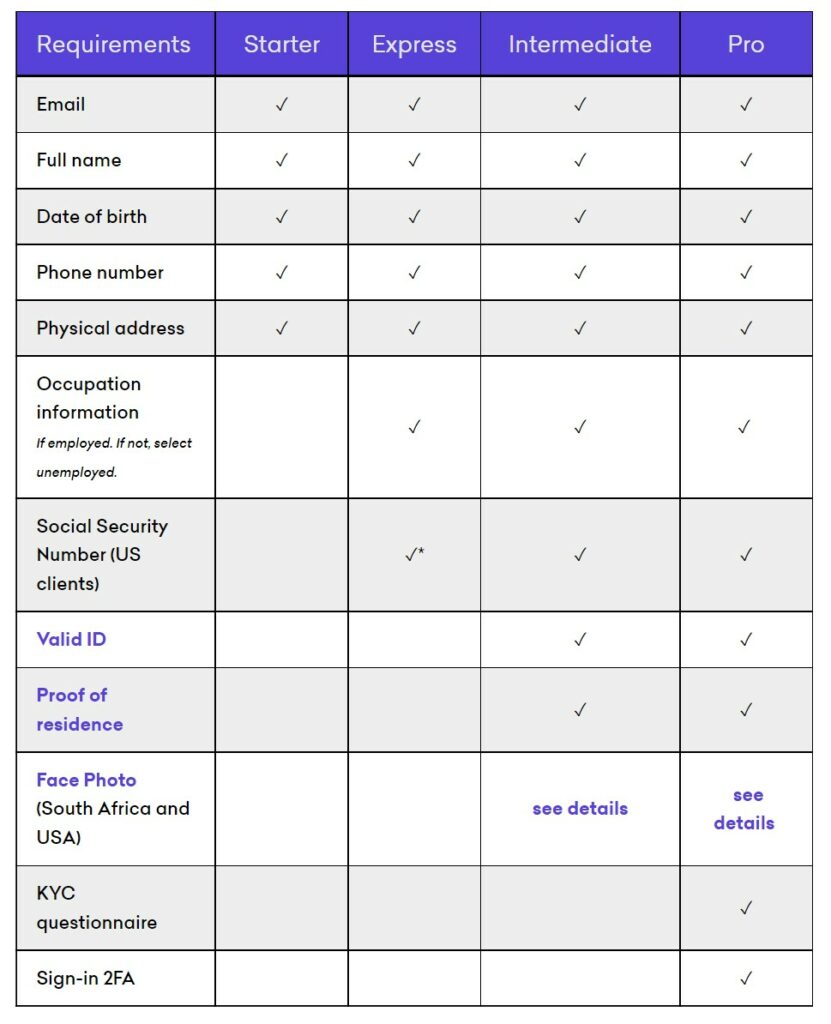 Image via KrakenThey made this handy chart showing what features are possible with each of the verification levels to help users decide how far in the KYC process they need to go: