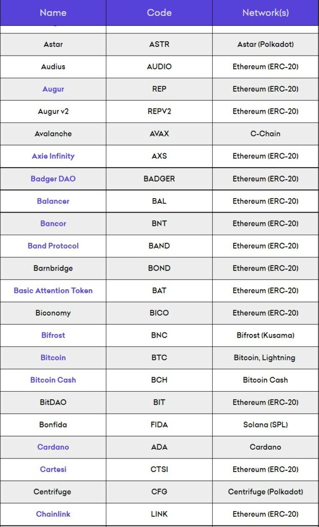 Some of the Assets Available. Image via KrakenFor stablecoin support, Kraken supports USDT on Ethereum and Tron and supports tokens on Polkadot, Solana, Cardano, along with many other networks. Ripple is also available on Kraken for those XRP enthusiasts. You can find the full list on the Kraken Supported Assets Page.
