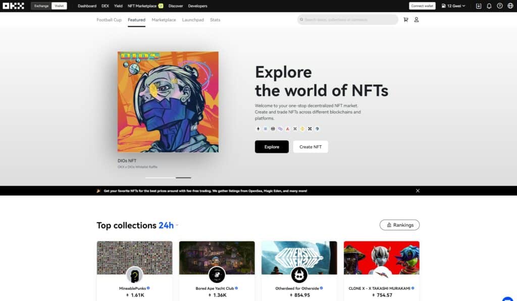 OKX, on the other hand, is better suited for traders who want to explore everything that crypto has to offer. OKX is an absolute gem for anyone looking to dive into the world of DeFi, Metaverse plays, NFTs, explore GameFi projects and more.