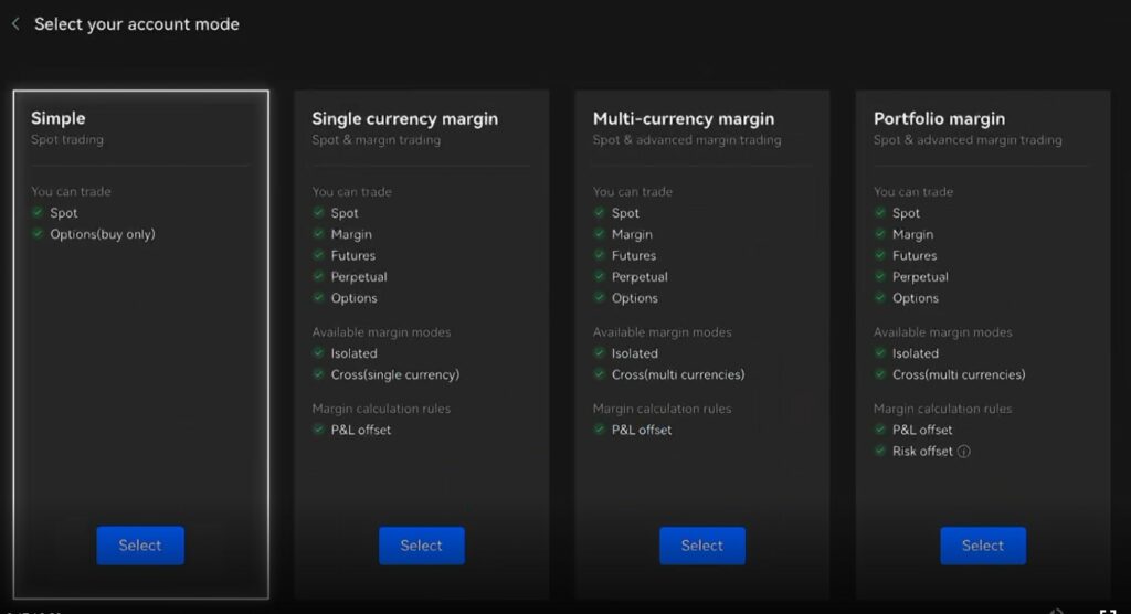 OKX offers individual and corporate accounts. Individual accounts can select different modes based on the needs and KYC level of the user:
