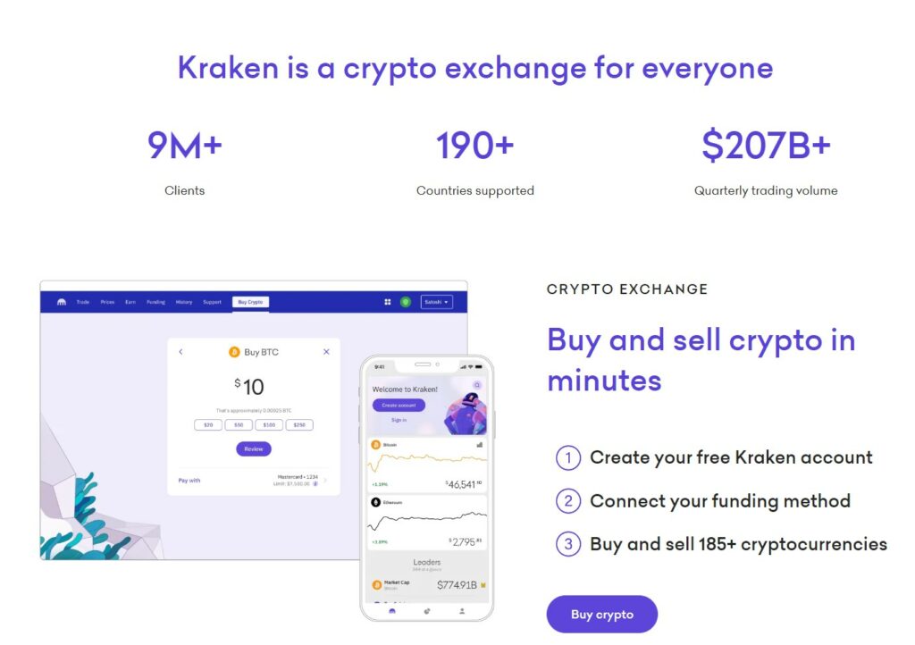 Kraken is a top-rated, US-based crypto exchange that has grown in user adoption and popularity worldwide. The Kraken exchange has held the #3-4 position as the largest exchange by trading volume for several years and is considered one of the major five exchanges by user base and trading volume.
