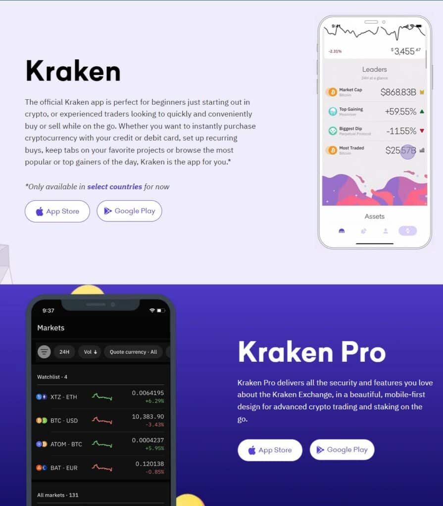 - Kraken Pro for advanced traders