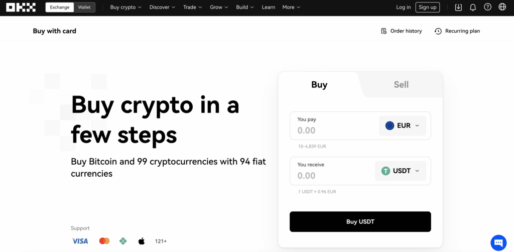 Image via OKXFees for purchasing crypto can vary quite a bit depending on the service provider and method being used. Fees for purchasing crypto are set by OKX’s third-party purchasing providers, some of which can come in at over 5%, so be sure to double-check the fees before finalizing the purchase to make sure you aren’t paying more than you are expecting.