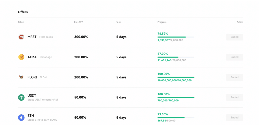 - Flash Deals: For those looking to scratch the occasional gambling itch, Flash Deals could be the one to satisfy that itch. Basically, you have the opportunity to get some really dodgy-looking coins and stake them to earn some ridiculous APYs (52% for BTC up to 300% for MARS!). You'll need to get your eyes glued to the page as they come and go quite sporadically. Be ready to withdraw before the pool disappears!