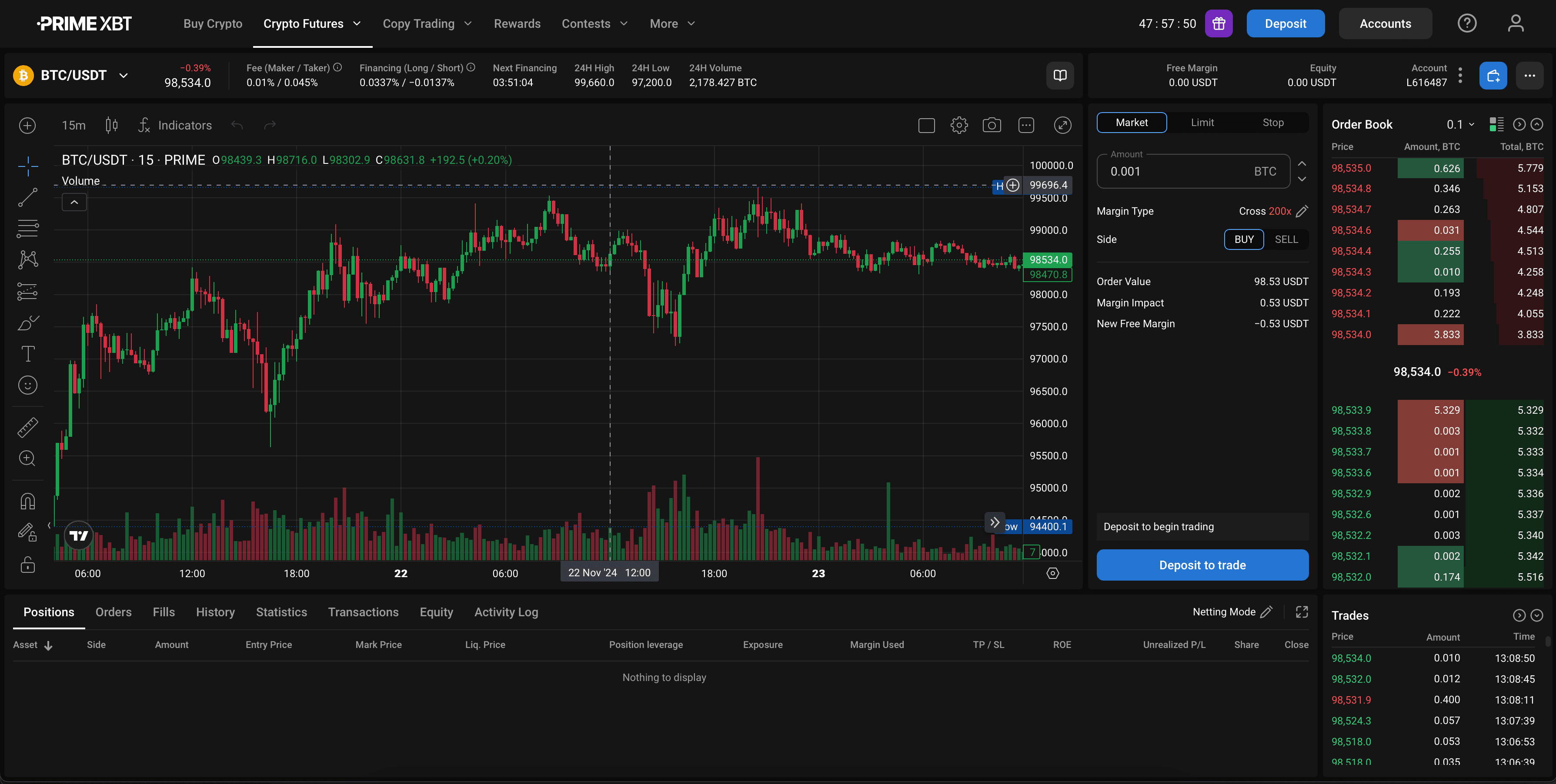 A look at PrimeXBT's trading interface: