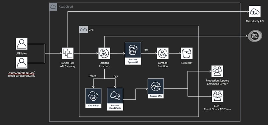 Capital One Credit Offers API Architecture. Image via Capital OneThat would be a breach of security and would put private and proprietary information at risk. And there’s no reason a vendor who handles loan servicing functions would need full access to the Capital One systems.