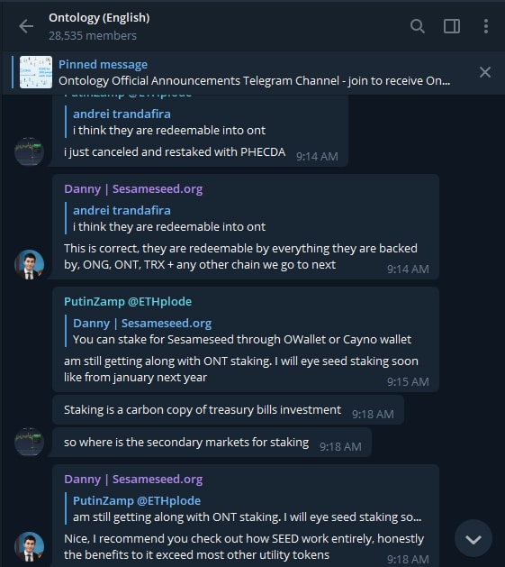 Ontolgy's English Telegram GroupThen, taking a look at their Telegram, they have over 28k members in their main group chat. I jumped in to get a better sense of the conversation. It's really quite engaged and there is a healthy balance of technical & news related conversation.
