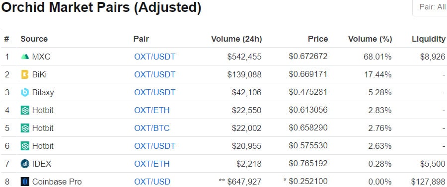 Some of the Markets Where OXT is trading. Image SourceGiven the amount of volumes that are taking place for the token one can only assume that some retail demand is coming back in as traders FOMO on OXT. Currently, markets still remain incredibly volatile so you should exercise caution when buying / selling OXT.