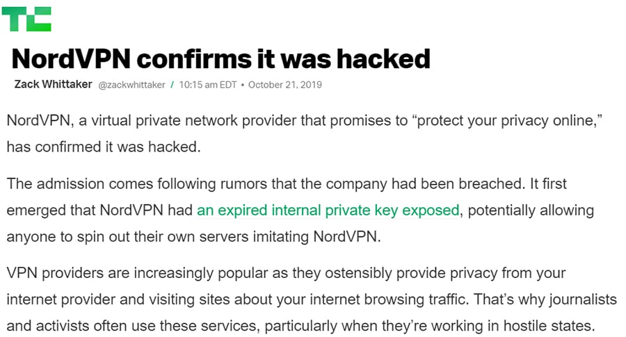 NordVPN Breach of user information. Images via TechcrunchThere’s no way to know for sure which VPN providers might be storing log data on their users. The Orchid system allows its users to decide which nodes they trust.