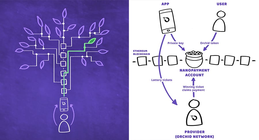 Flow of Probabilistic Nanopayments. Images via Orchid BlogThis nanopayment system underpins the peer-to-peer bandwidth marketplace of Orchid. It allows users to pay node operators with OXT for proxy bandwidth. The Orchid protocol was designed to keep transaction fees low even on small payments by amortizing transaction fees across transactions and even users.