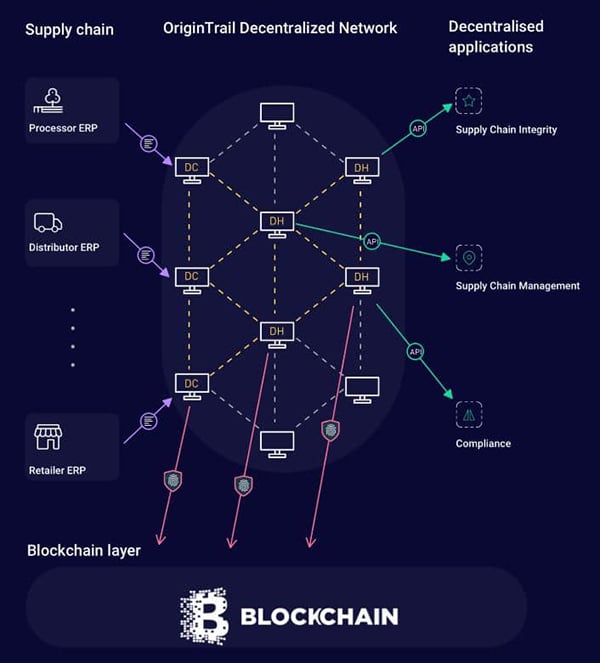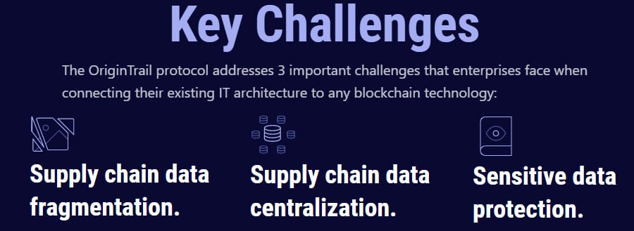 Decentralized data sharing for supply chains. Image via OriginTrailExplained.infoThe protocol is designed to address three challenges that all enterprises face when attempting to connect their legacy systems to blockchains: