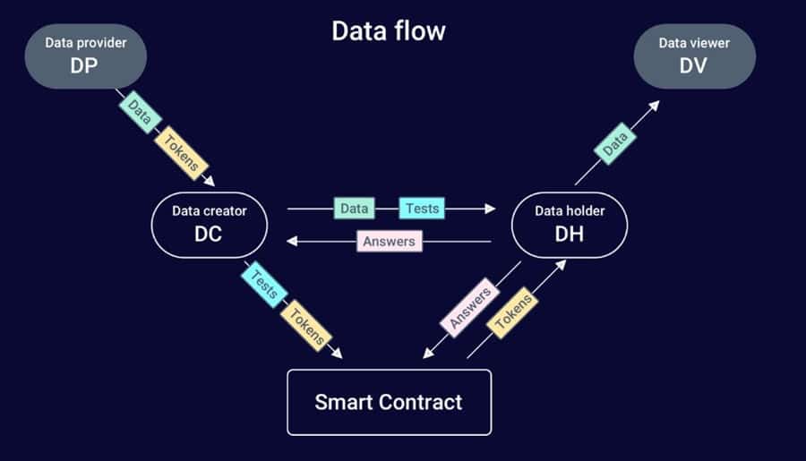 - Data Viewer - The Data Viewer (DV) is an entity that requests data from any network node able to provide that data. The interest of the Data Viewer is to get the data for as affordable as possible, but also to be sure that the provided data is genuine. Therefore, the Data Viewer also has an opportunity to initiate the litigation procedure in case the data received is not valid, which could lead to slashing if it is proven that false data was provided.