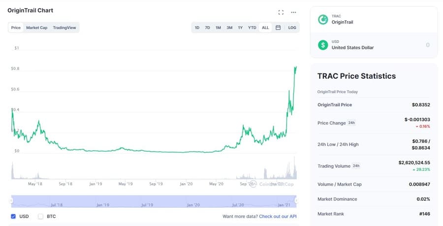 The price history of the TRAC token. Image via Coinmarketcap.com The OriginTrail Team