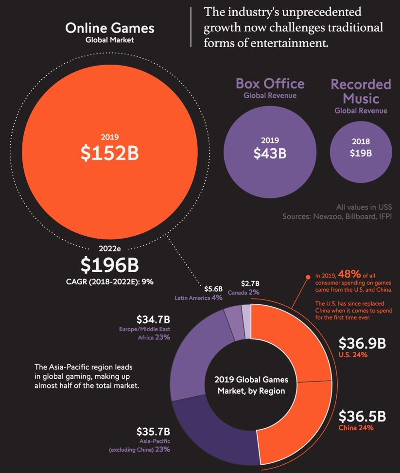 Games' Revenue Esclipes Other Forms of Entertainment. Image via Visual CapitalistIn recent years, the integration of virtual reality (VR) has taken gaming to unprecedented levels of immersion. With VR technology, you can simply put on a headset and experience the game world in 3D with a sense of presence.