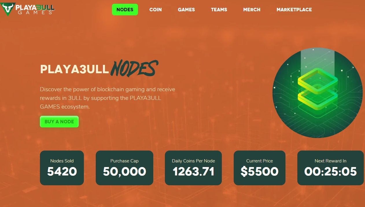 The network issues 13,698,630 3ULL coins daily, with 50% evenly distributed between node owners and the remaining 50% allocated to the company for operational purposes. Playa3bull utilizes its share to sustain overall operations, acquire games, and facilitate ongoing game development initiatives. As the quantity of nodes grows, the number of coins allocated to individual node owners diminishes proportionally.