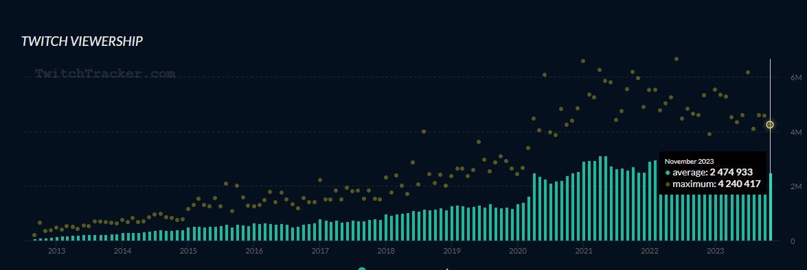 Twitch is by far the largest game-streaming platform. In October 2023, Twitch viewers spent 1.8 million hours consuming content and the website logged 6.9 million active streamers, according to TwitchTracker.