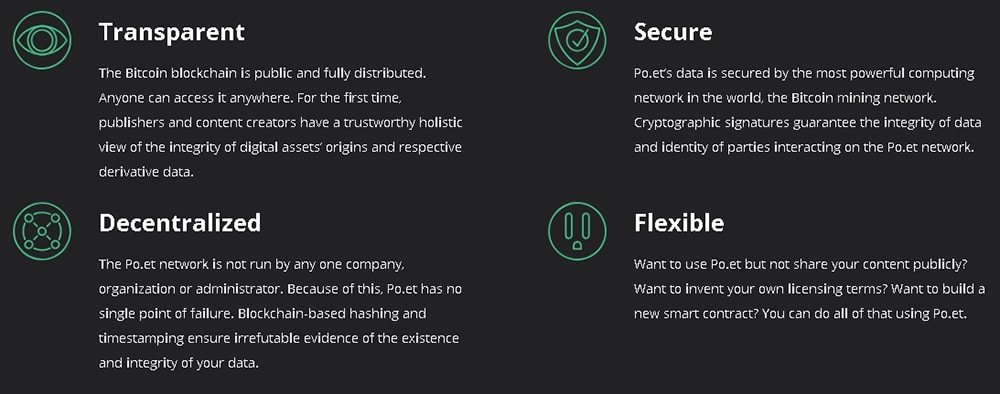 Po.et is leveraging the power of blockchain technology to ensure that digital assets can be stored, shared, analyzed, and even licensed fairly, provably and immutably. This should succeed in adding value to the publishing industry by creating trust between content creators, editors, publishers and consumers.