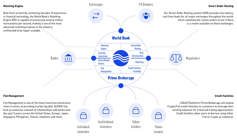 The World Book will be a part of the planned Liquid Platform, as will the Prime Brokerage, which will provide users with an advance selection of trading tools. The World Book works with a technology called the Matching Engine, which was built from scratch specifically for the Liquid Platform.