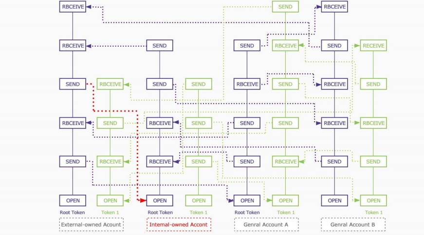 The multi-dimensional block lattice architecture allows for cross chain communication as well as allowing for massive scaling. This architecture is used in other projects such as Nano for example.