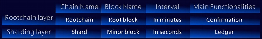 The structure of QuarkChain is reliant on two layers. The first layer consists of sharding blockchains, called shards, and the second layer is the root blockchain which is used to confirm shards blocks and provide security for the entire network.