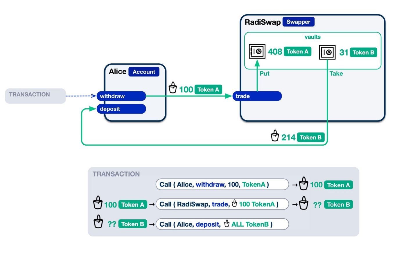Radix Engine Simplifies Smart Contract Development. Image via RadixUnlike traditional approaches where assets are managed at the smart contract level, Radix integrates assets as a fundamental feature of its platform. This means that tokens are not implemented through separate smart contracts but are directly requested from the platform itself, streamlining the process and ensuring consistency.