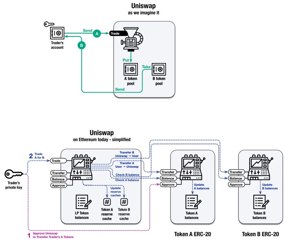 How Swapping on Uniswap Should Work vs How it Currently Works. Image via RadixOne of the most glaring issues plaguing current smart contract development is the steep learning curve associated with languages like Solidity, Ethereum's primary programming language. Mastery of Solidity to a "DeFi ready" level often requires years of dedication and practice, severely limiting the pool of developers capable of building sophisticated DeFi applications. Even seemingly straightforward tasks, such as creating a token, necessitate the deployment of custom smart contracts from scratch, leaving developers burdened with the responsibility of implementing basic functionalities themselves.