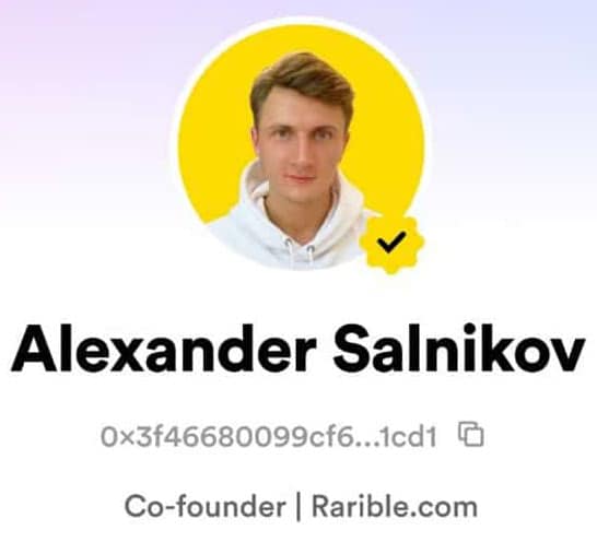 Alexander Salnikov is listed as the Head of Product for Rarible, which includes the whole spectrum of product-related activities. Prior to the creation of Rarible Alexander was connected with several other crypto projects and startups, including Humaniq.
