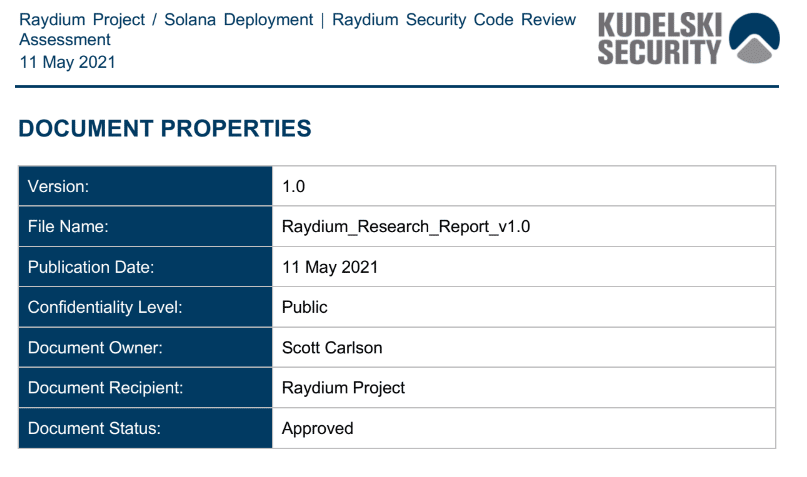 Raydium received an initial audit in 2021 by Kudelski Security and has since undergone numerous changes. Therefore, while a full re-audit is currently underway, the team has received extensive reviews from members of the Neodyme team via a bug bounty agreement.