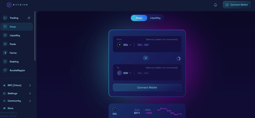 Raydium is an excellent platform for trading tokens on the Solana ecosystem due to the following reasons-