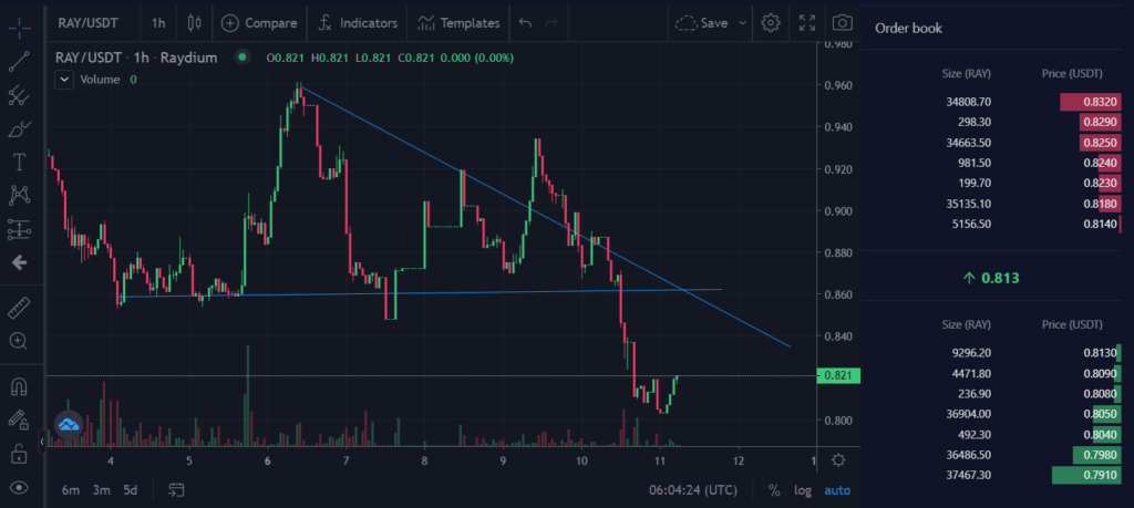 Trading Charts on RaydiumAs for more realistic areas of improvement, Raydium’s trading chart feature on its limit order book interface is something that most traders appreciate. It allows users to mark and draw trading patterns. However, it remains limited to the trading pairs whitelisted by Raydium unless you’re willing to manually add a custom market and spend some SOL on network fees in the process. In my opinion, Raydium could improve on this by increasing the number of trading pairs on the limit order interface or by launching a dedicated trading chart interface for all assets on Solana.