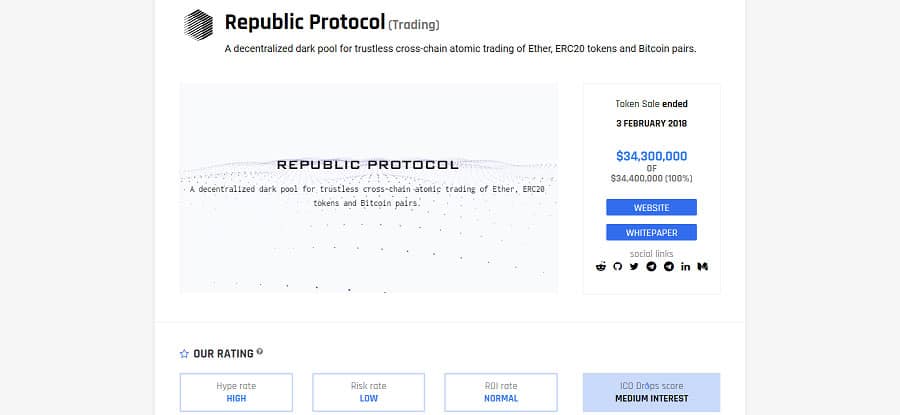 In 2018, the Republic Protocol launched two rounds of initial coin offerings (ICOs) for the Republic token (REN). The first was a private ICO which took place in late January of 2018 and raised a handsome 28 million USD. The second ICO, this time public, was held a few days later in early February and raised a modest 4.8 million USD.