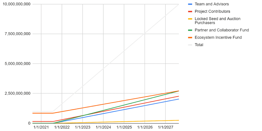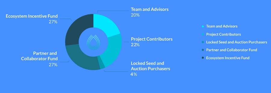 Of the remaining 96%, 20% has been set aside for the Team and Advisors, 22% has been reserved for Project Contributors, 27% has been reserved for Ecosystem Incentive Funds, and the last 27% has been allocated to a Partner and Collaborator Fund.