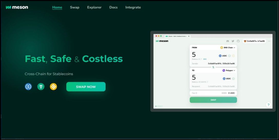Meson Runs on Europa Hub | Image via DappRadarMeson is a cross-chain swap platform that provides a stablecoin bridge connecting SKALE to more than 20 different chains. By enabling efficient and secure transfers of stablecoins across multiple blockchain networks, Meson enhances interoperability and liquidity within the DeFi ecosystem on SKALE. Users can perform cross-chain swaps with minimal fees and fast transaction times.