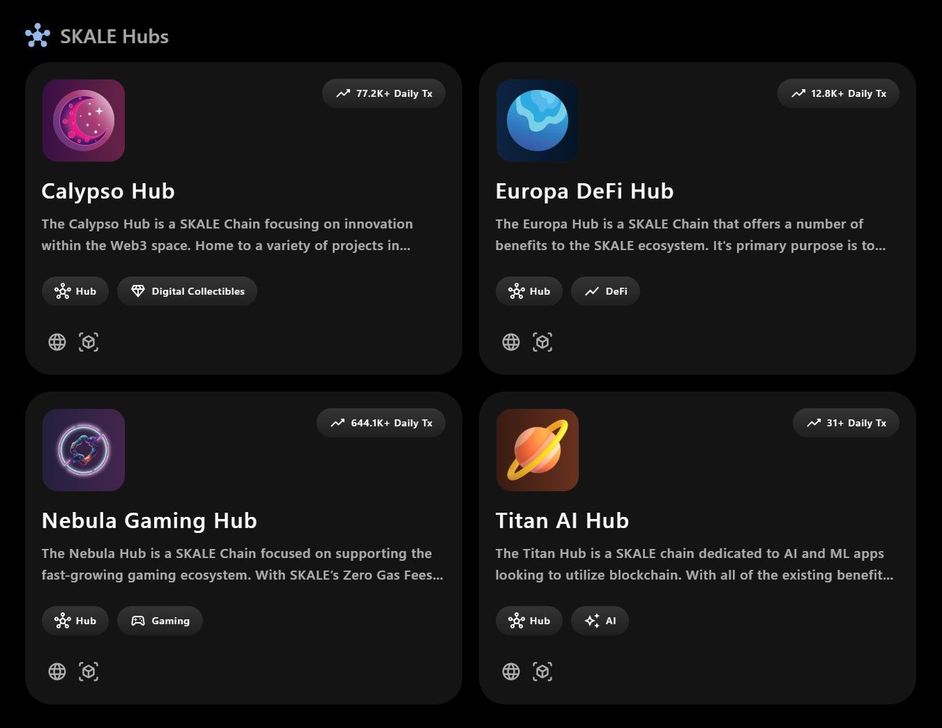 SKALE Hubs | Image via SKALEThe four main SKALE Hubs are: