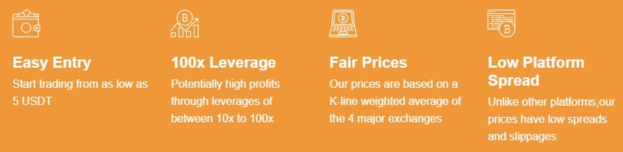 They offer leverage of up to 100x on a number of different cryptocurrencies. They have also developed a unique trading platform that does away with the notion of an order book. They hope that this simplified trading experience will speak to new traders.