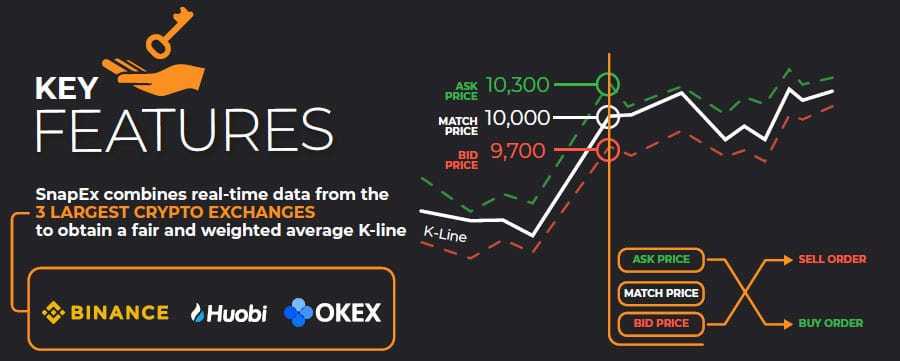 Overview of the SnapEx Price Line ChartsThis is basically a price line that is the average of the prices on 3 other exchanges. These exchanges are Okex, Binance and Huobi. They determine the weighting based on the total volume of said exchange.