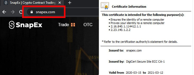 SSL Connection at SnapExThis is also a great way for you to spot any potential phishing attempts. If you land on a website and it does not have the secure lock in the browser tab then you can be sure that you are on a phishing page and should leave immediately.