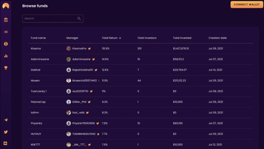Taking the visual of the fund displayed above as an example, one can see that since its creation the fund has returned a respectable 35.9% ROI, with a total $1,427,878 invested. This fund tracks the performance of 4 digital assets in particular, with these being Ripple, Solana, Step Finance and 3x Long Ethereum Token (shown in first visual).