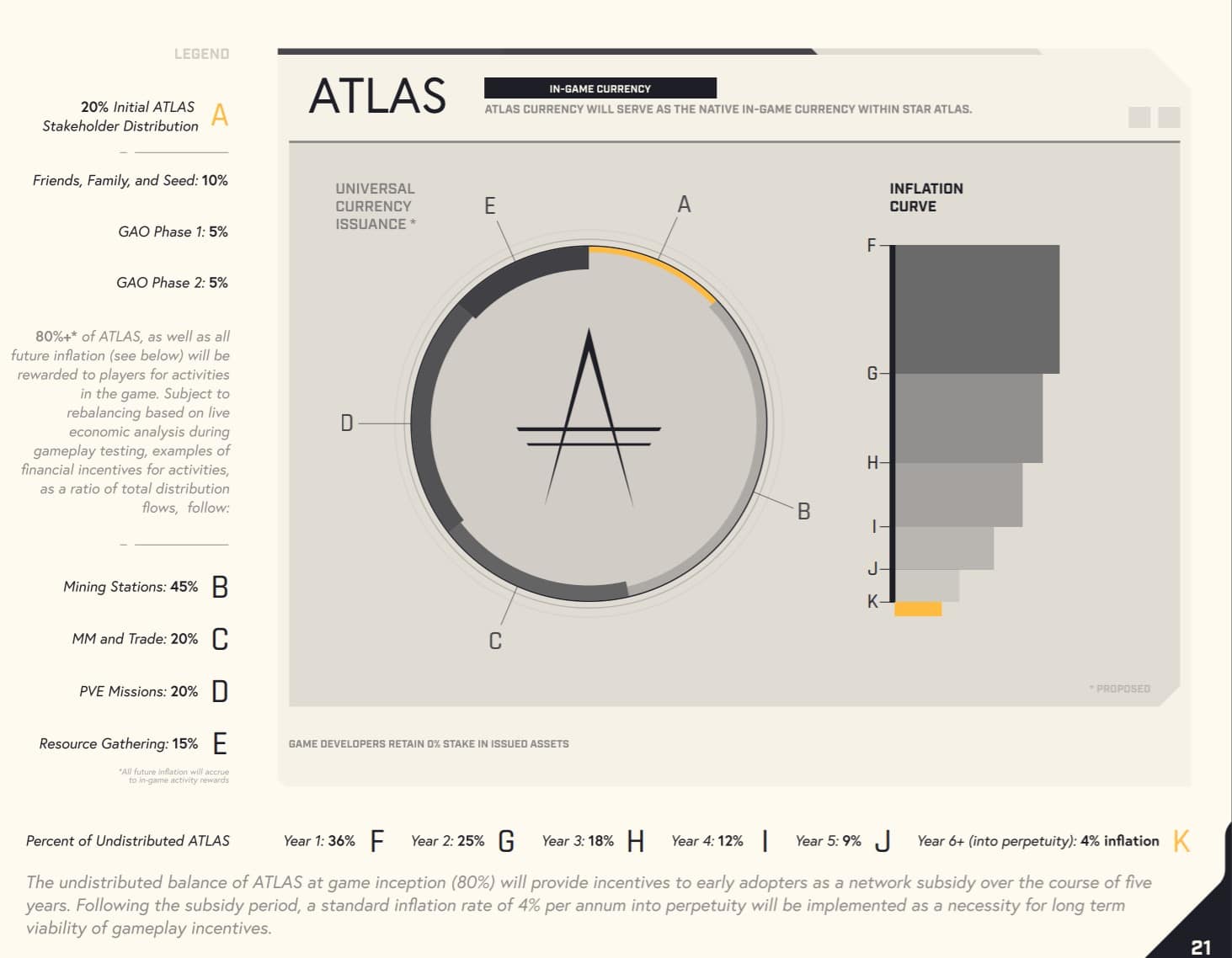 The ATLAS token was created with inflationary features to match and scale with the inflation of the in-game economy. This will ensure that the currency and price of items remain reasonable for new players over time.