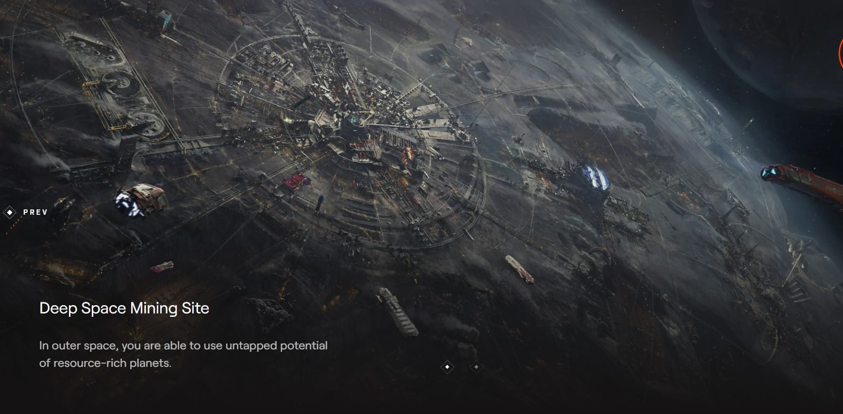 Space Stations will have adjacent mining installations associated with them, and each station will be able to be constructed with different decks. Each deck will enhance the functionality of the space station and unlock features that will allow players to engage with that specific station in different ways. The following decks will be available: