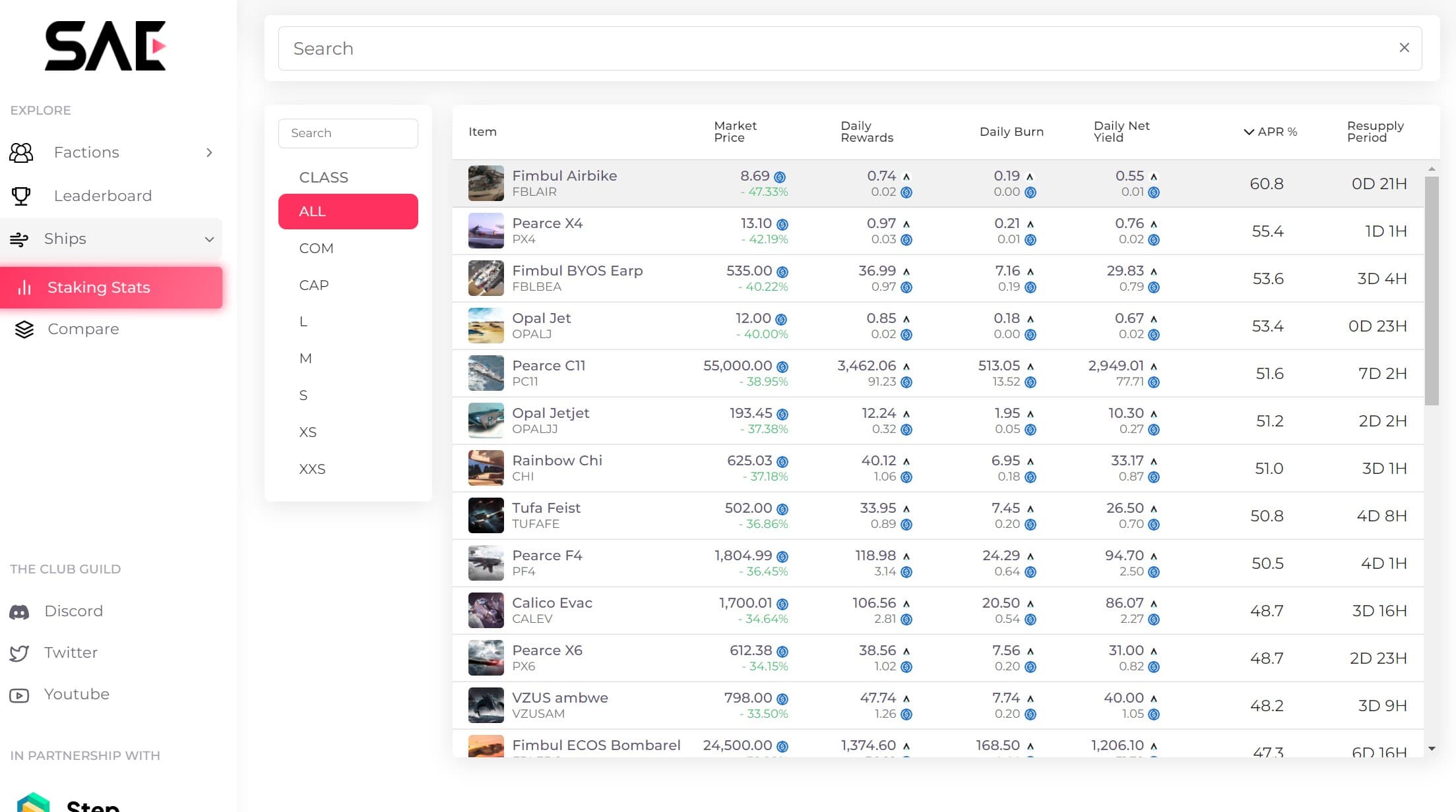 Ship Staking Stats Image via staratlas.club Star Atlas Mining