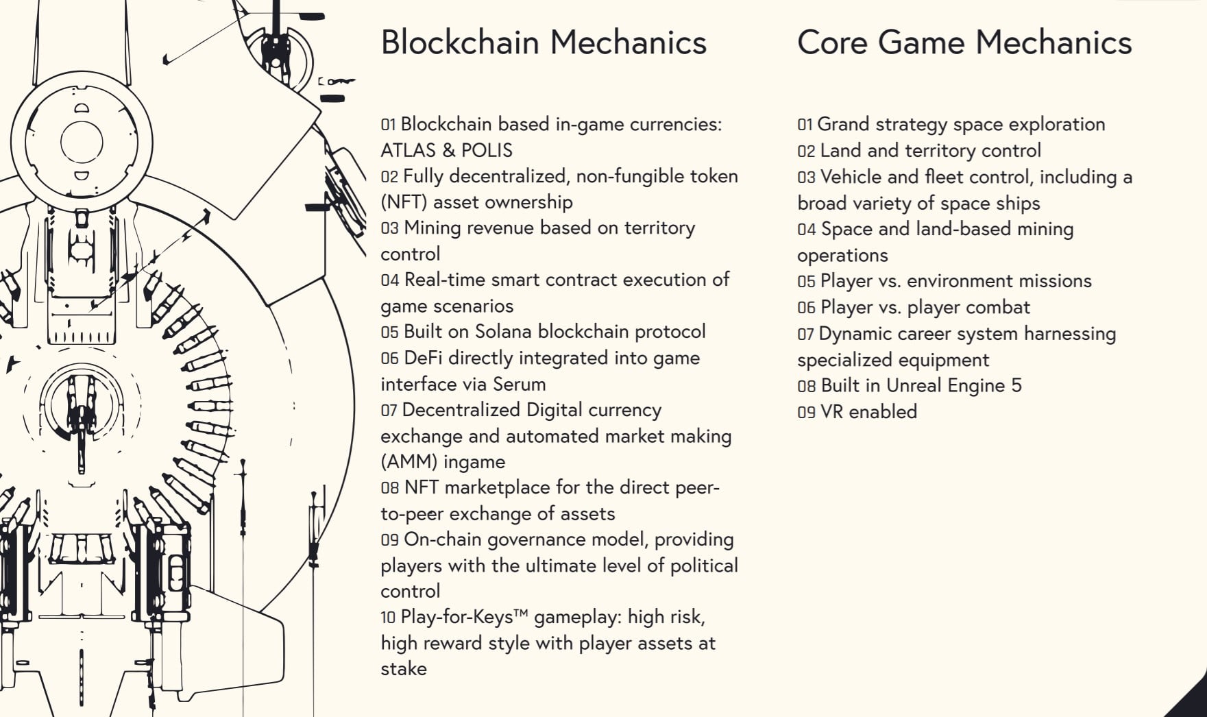 Image via Star Atlas Whitepaper As seen above, the game mechanics are broken into core and Blockchain mechanics.