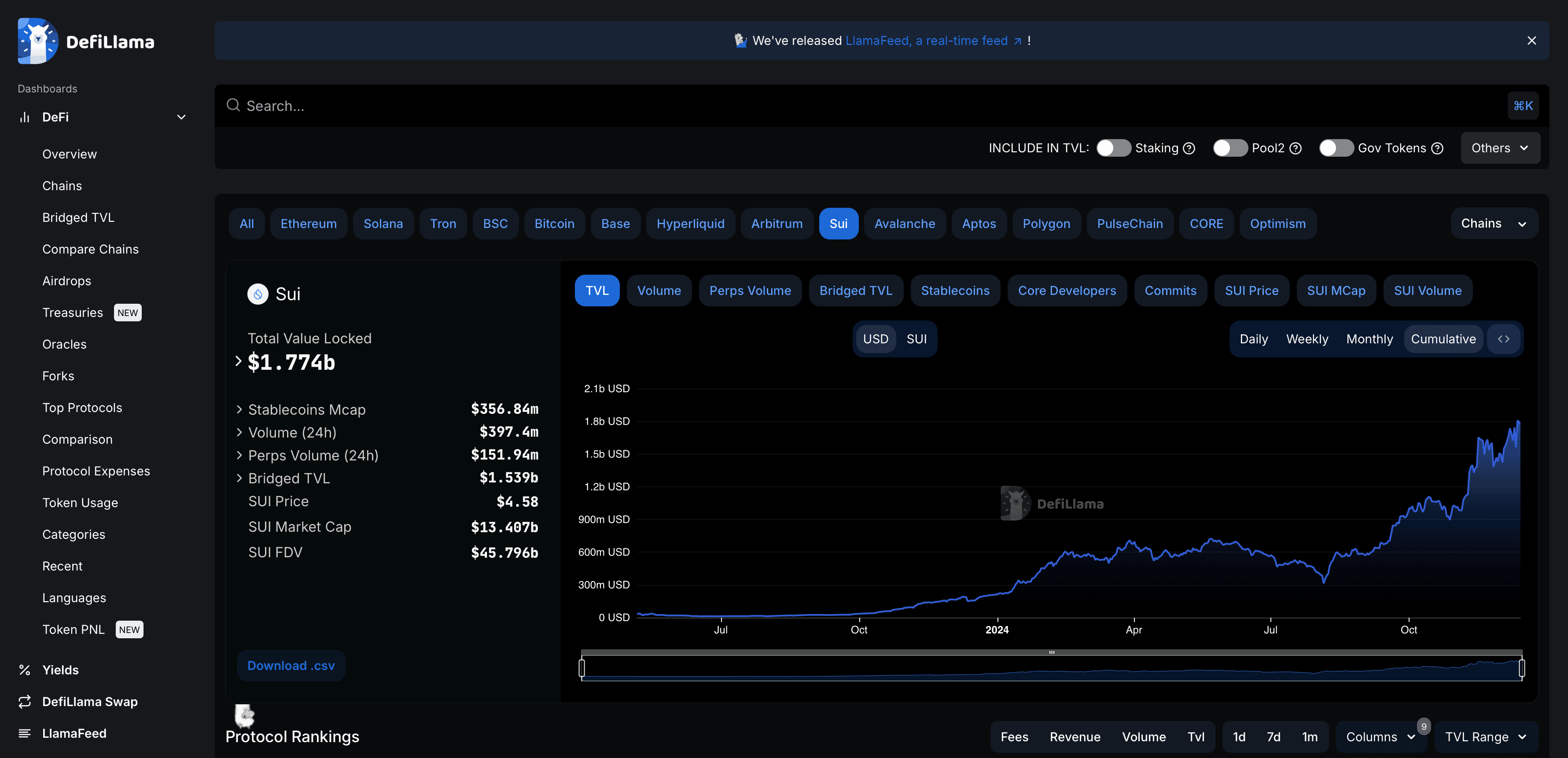 Sui currently has a TVL of 1.774b with an impressive upward trajectory since its launch, showing the excitement surrounding the potential of this blockchain.