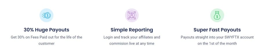 There is an affiliate program and Swyftx rewards its affiliates with 30% of the fees collected on all trades for the lifetime of the referred account. Casual users also get a referral code that they can use to refer their friends and receive the same generous 30% lifetime payout.