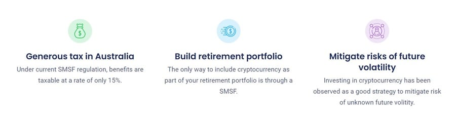 Start saving for your retirement and save on your taxes too. Image via Swyftx.com.au According to the Australia Tax Office (ATO), SMSFs are a type of retirement savings fund. Compared to other types of funds, SMSF members also serve as its trustees. As such, SMSF trust members maintain compliance with all ATO regulations like tax regulations and super laws. SMSF tax benefits make the investment vehicle a popular choice for cryptocurrency holders. Under current SMSF regulation, benefits are taxable at a rate of only 15%.