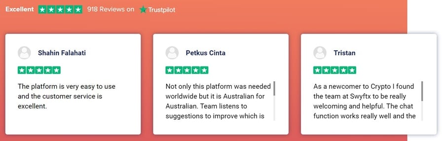 The customer support staff at Swyftx is acknowledged to be quite excellent, and it’s their hardwork in part that has earned Swyftx over 900 ‘Excellent’ reviews on TrustPilot. As one of the most trusted and used consumer review sites the feedback found on TrustPilot is quite valuable in recommending Swyftx as a cryptocurrency exchange. Just look what reviewers are saying: