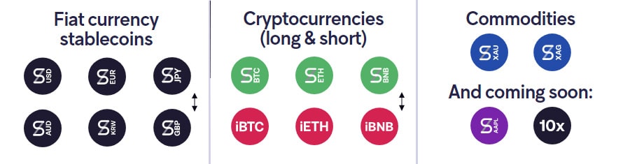 Even crypto traders can benefit through the access to a basket of cryptocurrencies in both long and short Synths.
