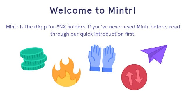 Mintr is a dApp that was created as an intuitive interface for managing SNX, Synths, and all the aspects of the Synthetix ecosystem.
