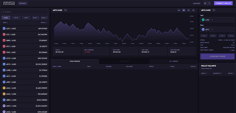 User Interface of the Synthetix ExchangeAccessing and using the exchange is easily accomplished by connecting a web3 wallet to the exchange. Once that’s been accomplished users can quickly and easily convert between different Synths and SNX.
